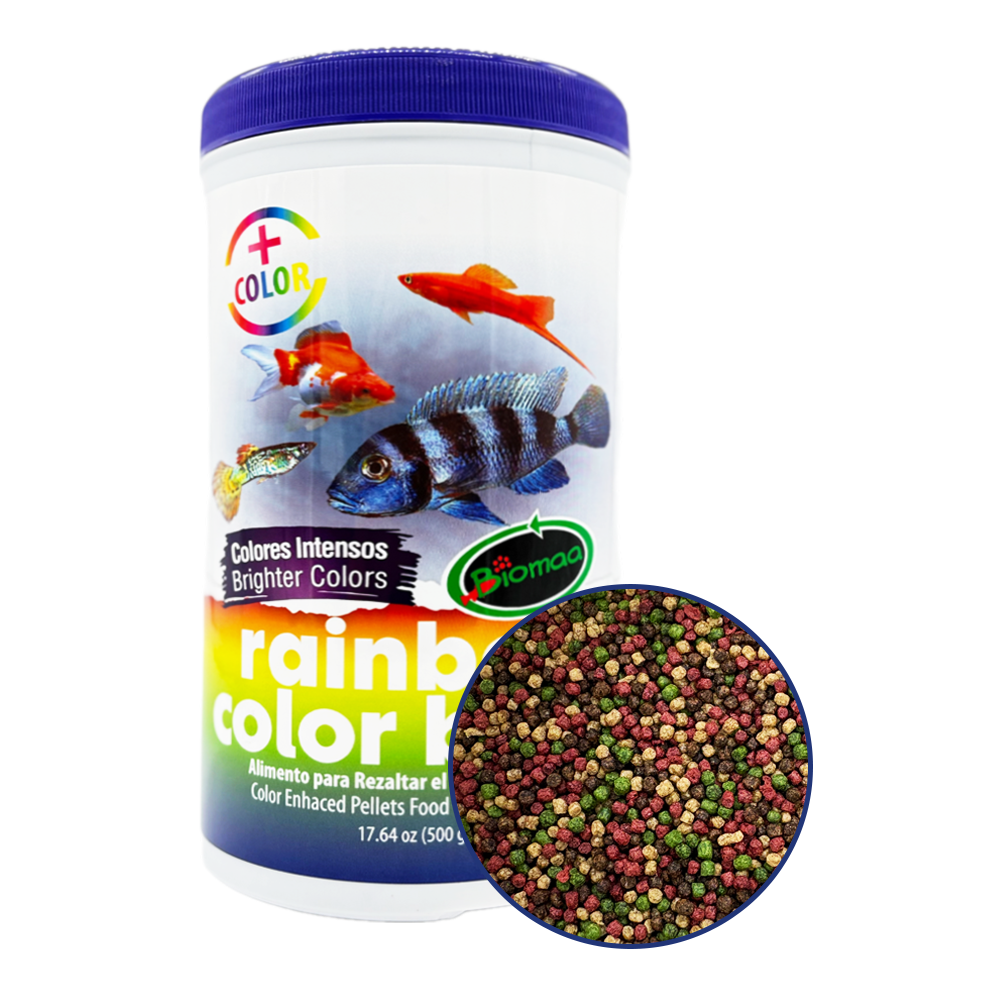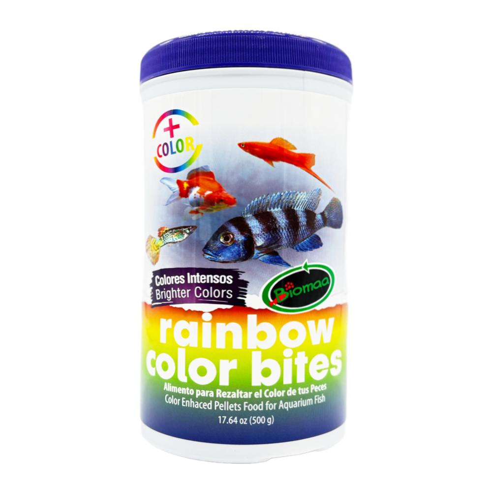 Alimento con una fórmula diseñada para satisfacer las necesidades dietéticas específicas de cada especie de pez, potenciando la expresión de su colorido natural. Los ingredientes naturales de Rainbow Color Bites aseguran la seguridad para la salud de sus peces.