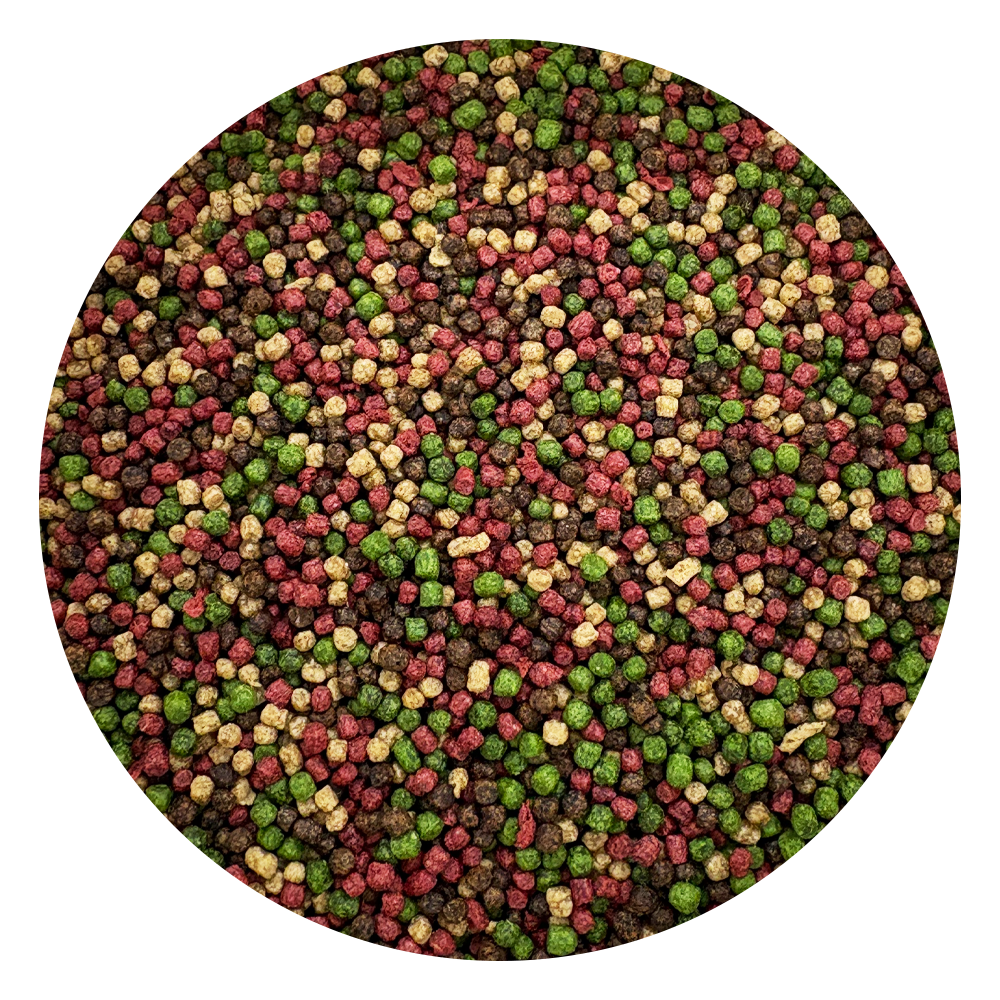 El color en los peces es determinado por su genética, pero para realzarlo, requieren compuestos químicos que se acumulan en sus cromatóforos, eritróforos (pigmentos rojos), melanóforos (pigmentos oscuros) y cianóforos (pigmentos azules). Estos pigmentos, a menudo sintetizados por organismos como algas microscópicas, levaduras y crustáceos, son adquiridos en su hábitat natural a través de la cadena alimenticia, un proceso que no se replica en el acuario.